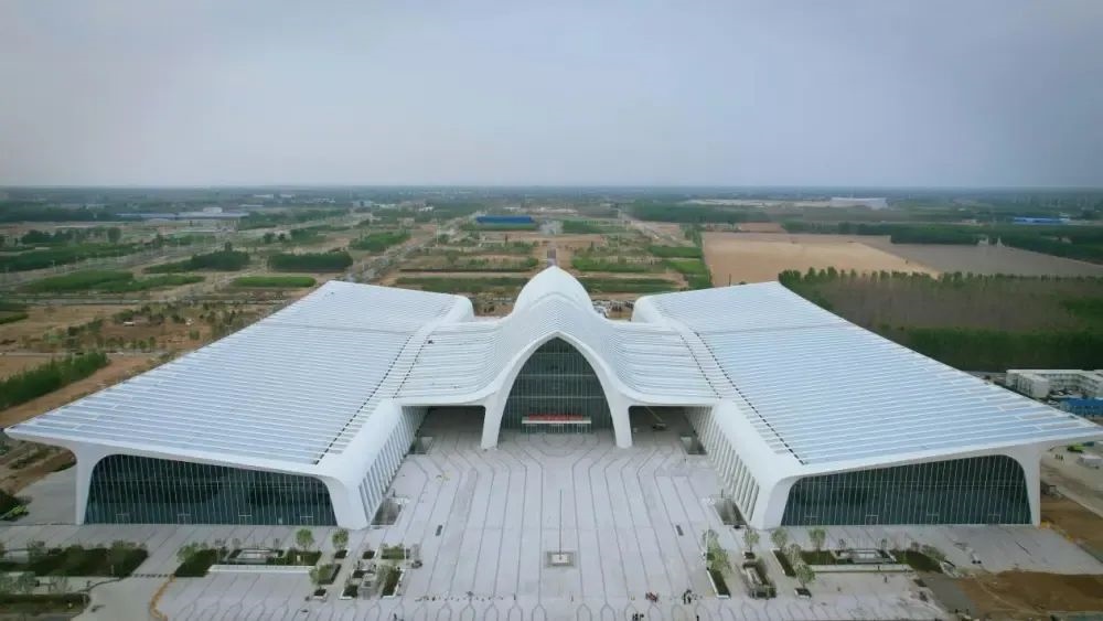 Циндао ШКУ Демонстрациялык зонада жайгашкан ШКУнун Кереметтүү ШКУнун Берметинин Экспоциясы Руйи көлү боюнча түбөлүккө таасир калтырды. Жогорудагы, анын тегерек "биримдик" - биримдик дизайнын өзгөчөлүктөргө ээ, биргелешкен өз ара байланышкан, кабык сымал ак чатырлар. Алар асманга карай чыңалуучу толкундарды түзүшөт.