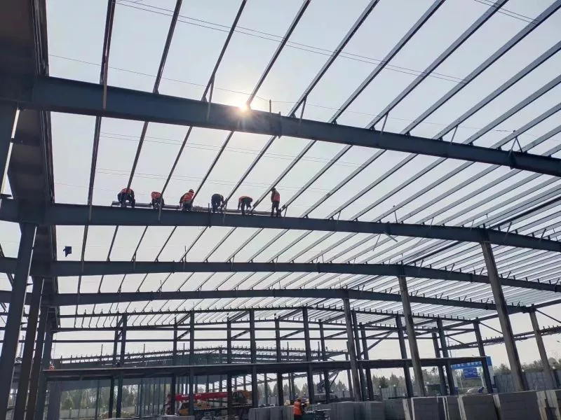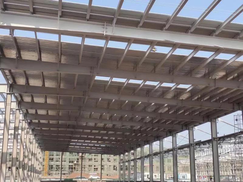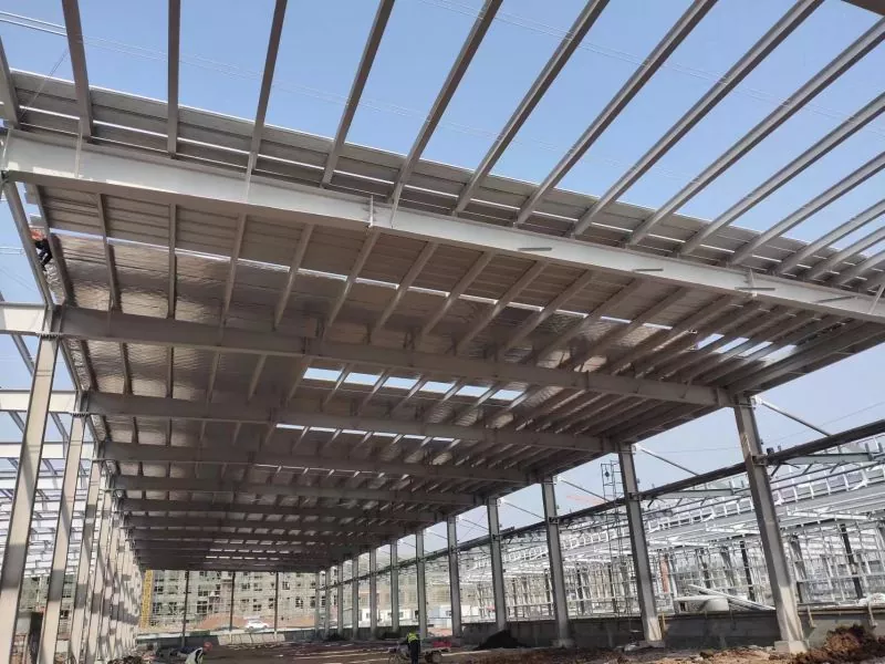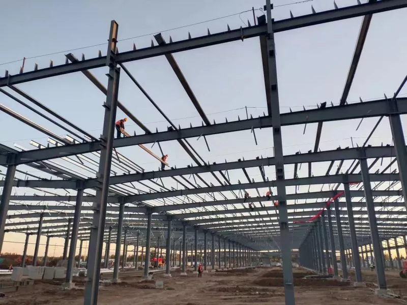 Жооп: Портал болоттон жасалган структуралык складдар, адатта, фабрикада префабрикалык камтылган, андан кийин имараттын аянтына жөнөтүлгөн. Курулуш процесси темир тосмолорун, устундарды жана чатырдын шыргыйларды түзүүнү, андан кийин дубал панелдерин орнотуу жана чатырдын үстүнө орнотуу кирет.