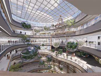 Жапон Фукая бакчасынын соода борбору соода борбору: Имараттын сырткы дубалдары менен соода-сатык түзүлүшүн бөлүңүз, имараттын сырткы дубалдары келип, соода борборунун айырмалоочу өзгөчөлүгү бар. Анын азык-түлүк соту экинчи кабатта, соода борборуна жана алыскы тоолордун кош көзкарашын сунуш кылган экинчи кабатта жайгашкан.