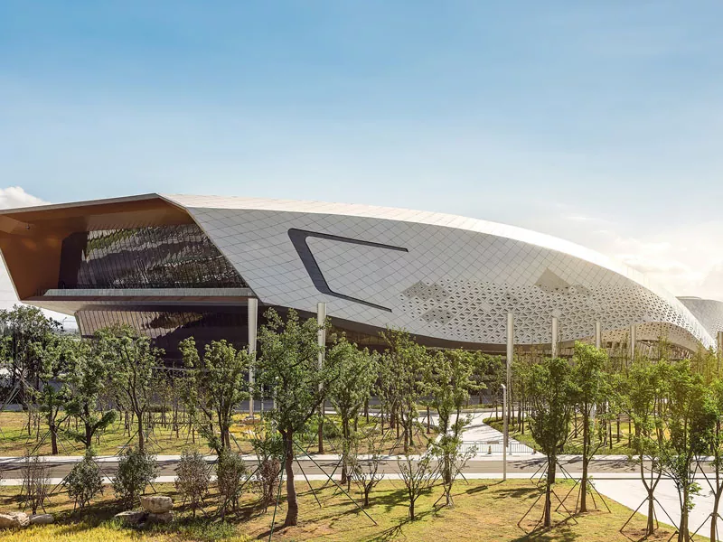 Чоң карыш: Префабрикалык темир структурасы Спорт борборунун комплекси көп желекөлөөчү колонналык дизайн аркылуу көп функционалдуу ийкемдүү мейкиндиктерге жетишет.